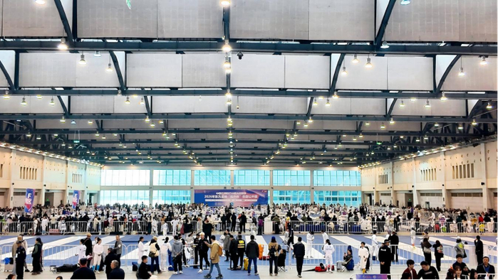 由于盐城国际会展中心此前已成功举办过该项赛事,因此,对于盐东方集团来说,也更加懂得主办方需求,在设施配套方面主动优化了合作方案。本届“盐外杯”使用场馆B展厅,为运动员和观众提供了非常舒适的比赛、观赛环境。展厅采用无立柱遮挡的通透布局,确保观众拥有无死角观赛视野,清晰捕捉赛场上的每一个精彩瞬间。层高12米的空间内,展厅顶部搭载智能LED照明系统,可根据赛事需求调节光线色温与照度,确保赛场光线均匀无眩光,为参赛选手稳定发挥提供技术保障。展厅墙面采用吸音板材,有效吸收环境噪音,为参赛选手营造安静专注的比赛氛围,助力其发挥出最佳竞技水平。